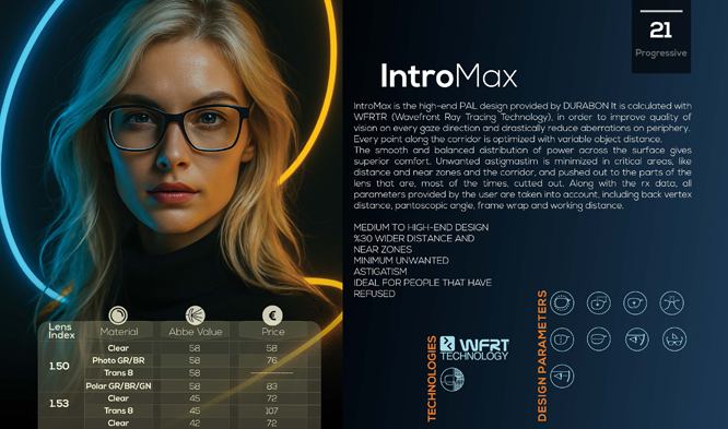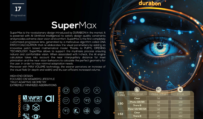 DURABON’s custom single vision lenses combine Freeform technology with AI-powered design, delivering unparalleled visual precision. Our tailored approach creates personalized lenses that adapt to each wearer’s unique needs, offering a transformative visual experience with exceptional clarity